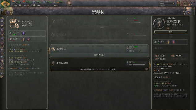 正当性デバフが解決して奴隷制廃止もあと一歩。