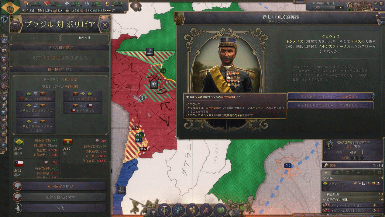 早めにボリビアを叩くことで安いBBRでペルーを含めて勢力圏に加えることができる。