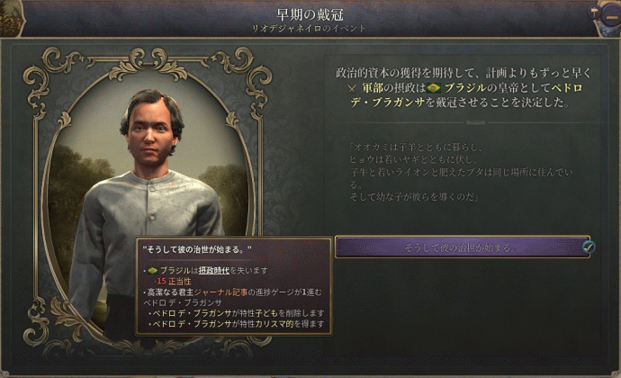 ペルーボリビアを勢力に加えていることにより初期から10年1度の権限追加が可能になっている。
