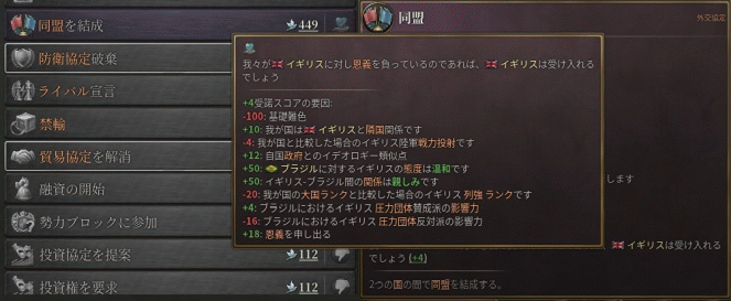 同盟もやぶさかではないらしいが、受諾スコアの列強ランク、