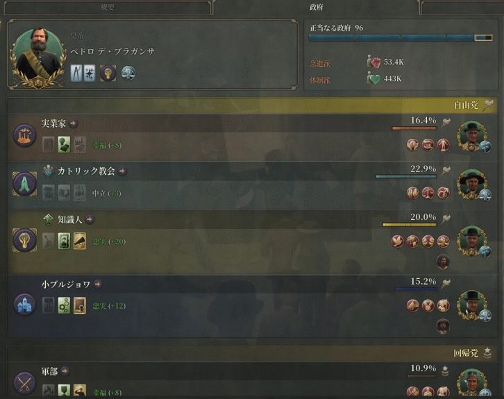 政府には正当性稼ぎのためにプチブルその他の高位自由党を追加するが、
