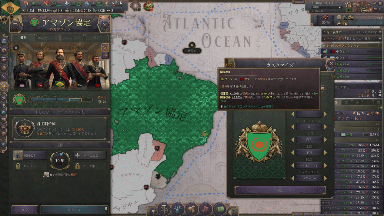 アイデンティティは君主制帝国で、これにより勢力へ加入した国を保護国化することが可能になる。