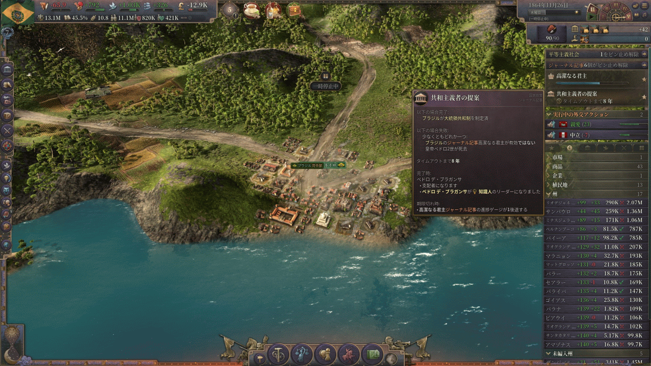そのままペドロの治世が終わった場合、高潔なる君主ジャーナルは失敗となって大統領共和制が制定される。