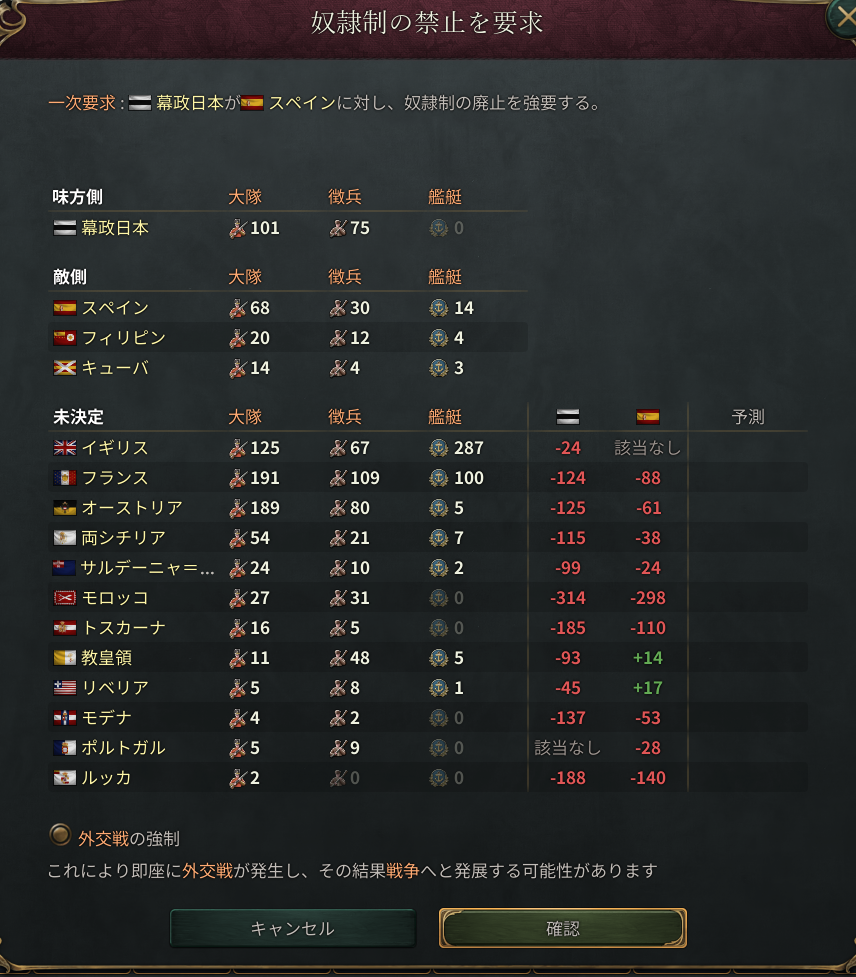 とりあえずスペインを奴隷禁止でぶん殴る。