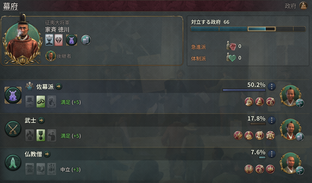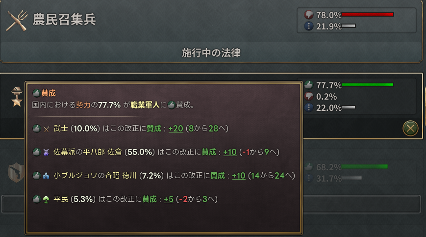 ついでに小ブルジョワはもう要らないので強化を止めて政府に侍を戻す。