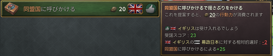 #ref(): File not found: "イギリスのロビー活動.png" at page "AAR/無理のない日本/無理のない日本の攻略"