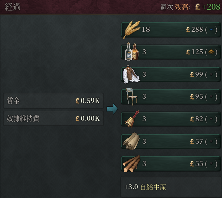 貴族・聖職者・小作農の総収入(賃金・配当・自給生産・扶養者収入の合計)から見る。奴隷は収入0なので無視。