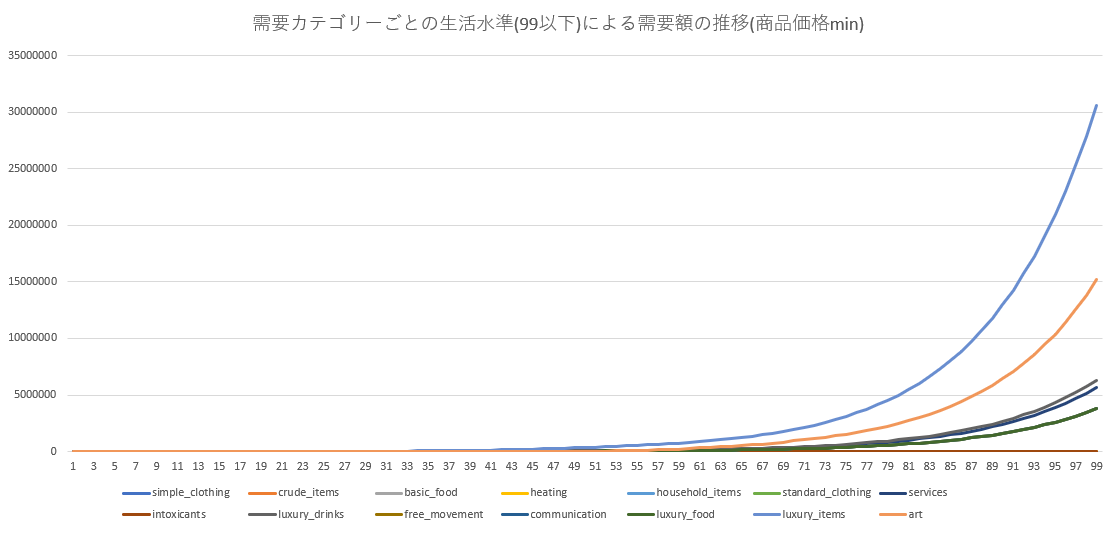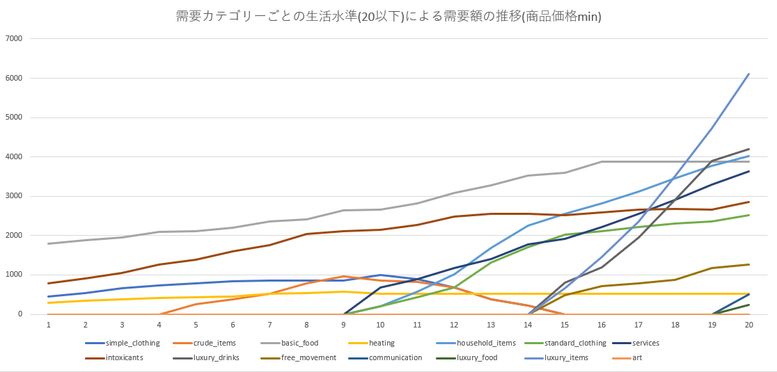 高級物品の増加率は緩やかに減少する。ここからSoL15以降の基幹消費物となる構図が見えてくる。